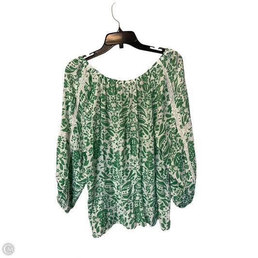 Top Long Sleeve By Hope & Harlow In Green & White, Size: 1x
