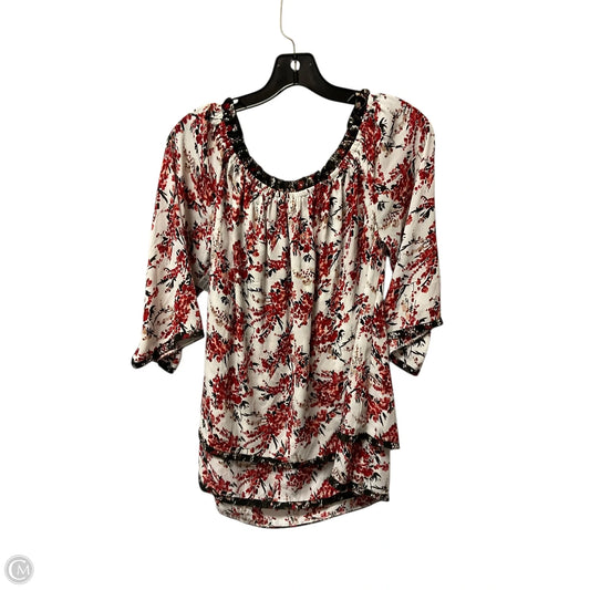 Top 3/4 Sleeve By White House Black Market In Red & White, Size: M