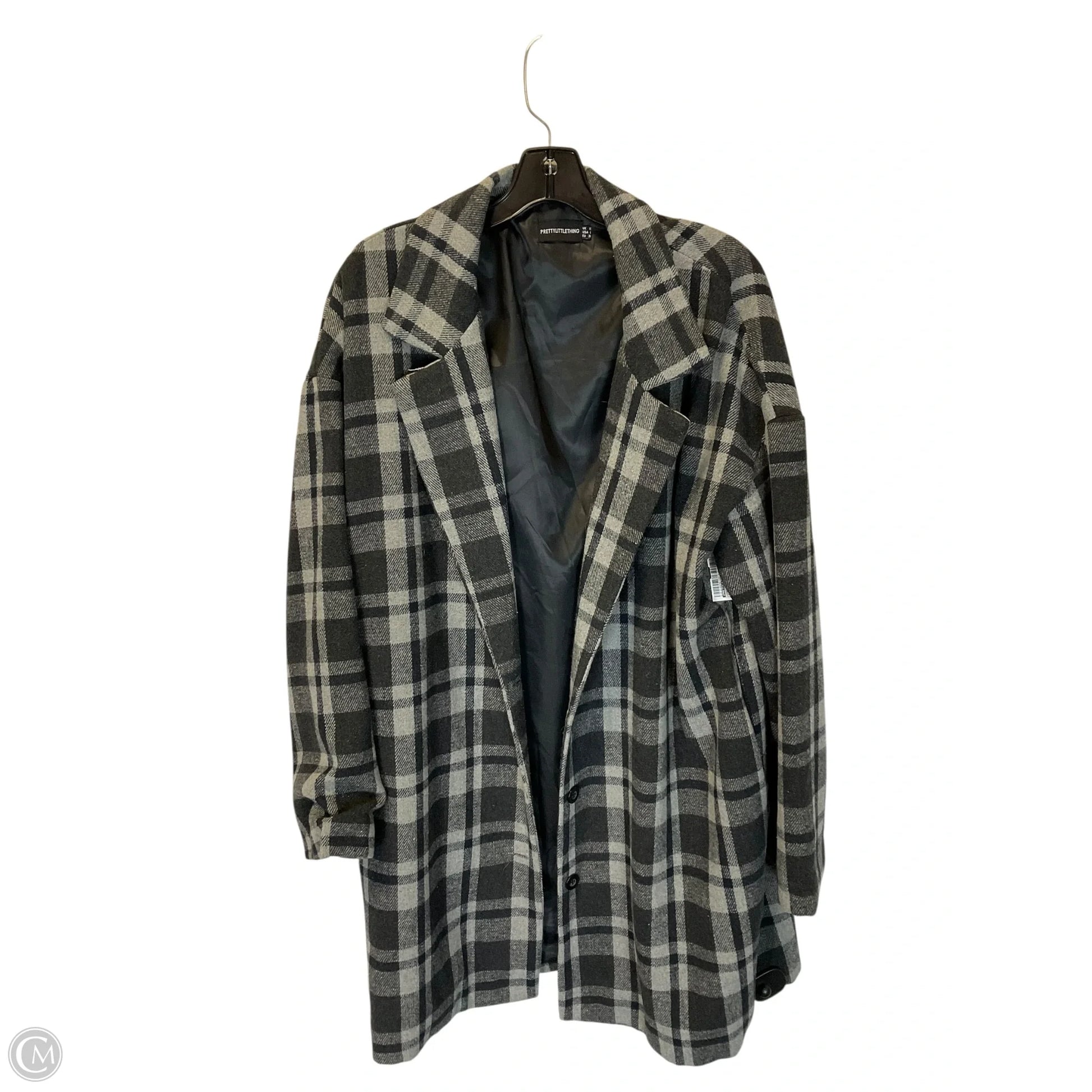 Coat Peacoat By Pretty Little Thing In Plaid Pattern, Size: S